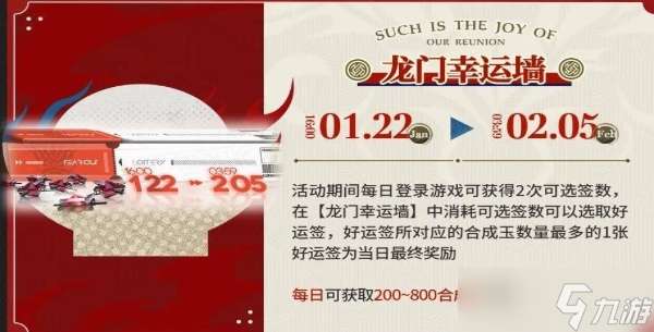 龙门幸运墙:每天可获得200~800合成玉,活动期间累计可获得约8000合成玉。