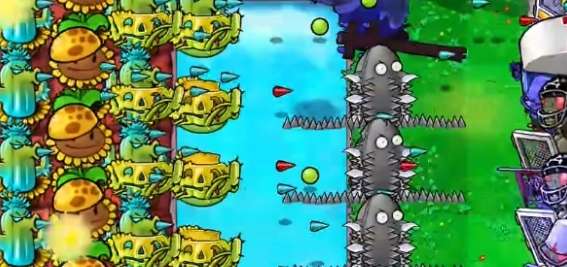 4、补充一列寒冰仙人掌,在右侧种植一列钢刺坚果王。