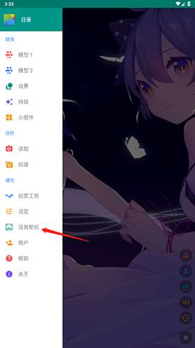 2、点击“设置壁纸”选项。跳转到系统壁纸设置页面,进行设置即可。除此之外,还可以在系统的动态壁纸设置页面,找到live2dviewerex即可。