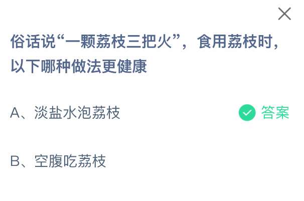1、俗话说“一颗荔枝三把火”,食用荔枝时,以下哪种做法更健康