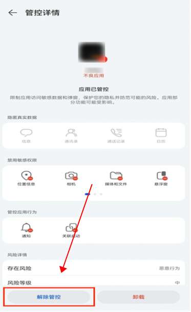 点击被管控的应用,点击左下角的“解除管控”