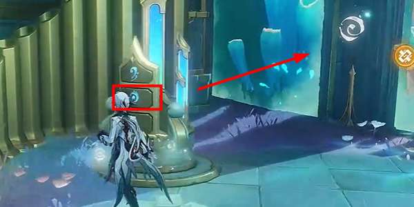 2、接着我们就找到附近的下图乐器,根据墙面上的图案提示,就能够启动面板。
