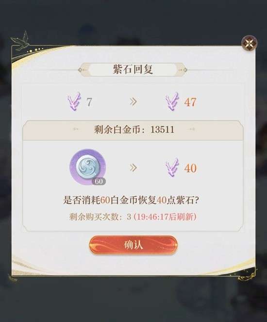 活动体力紫石每天限购,按照以往经验全勤玩家想拿全剧情的话是够用的不需要买。第一次60白金币买40紫石,花费依次递增。
