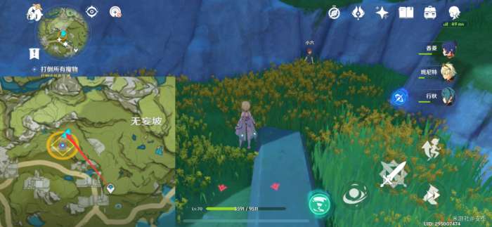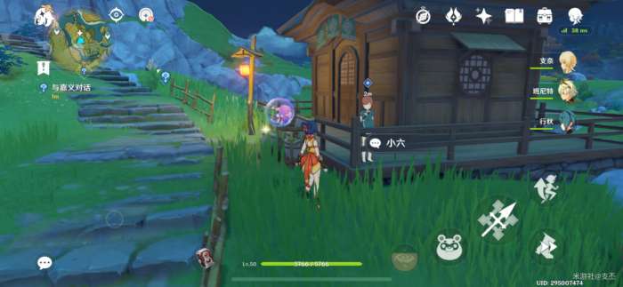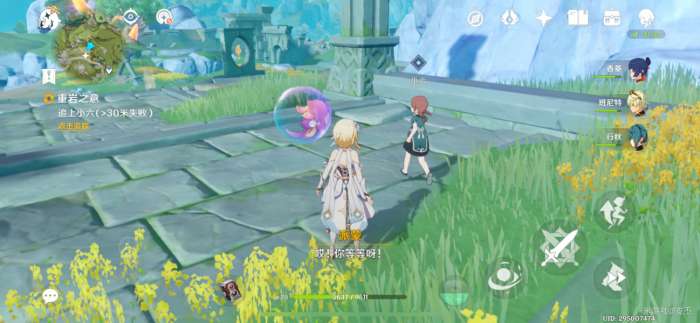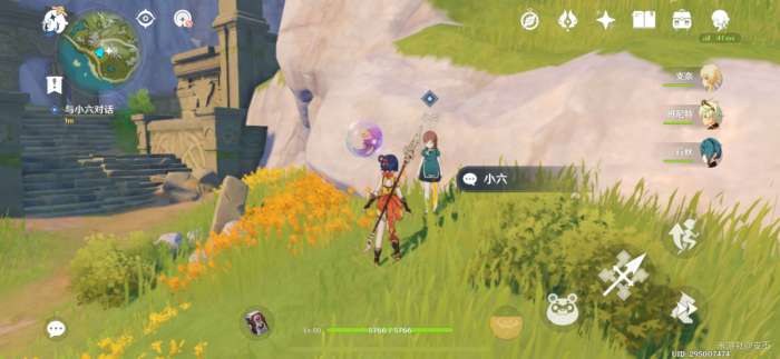 前往指引的地方,来到遗迹草丛处,出现丘丘人,击败它们,再跟小六对话