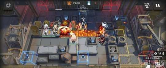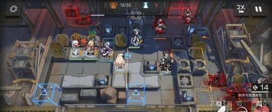 3、等大炮轰了一次,然后一口气把干员全部部署上去,包括小火龙和FF0,然后就是夜莺和水陈,这里建议先部署水陈,让夜莺早点把她的半血状态奶起来。