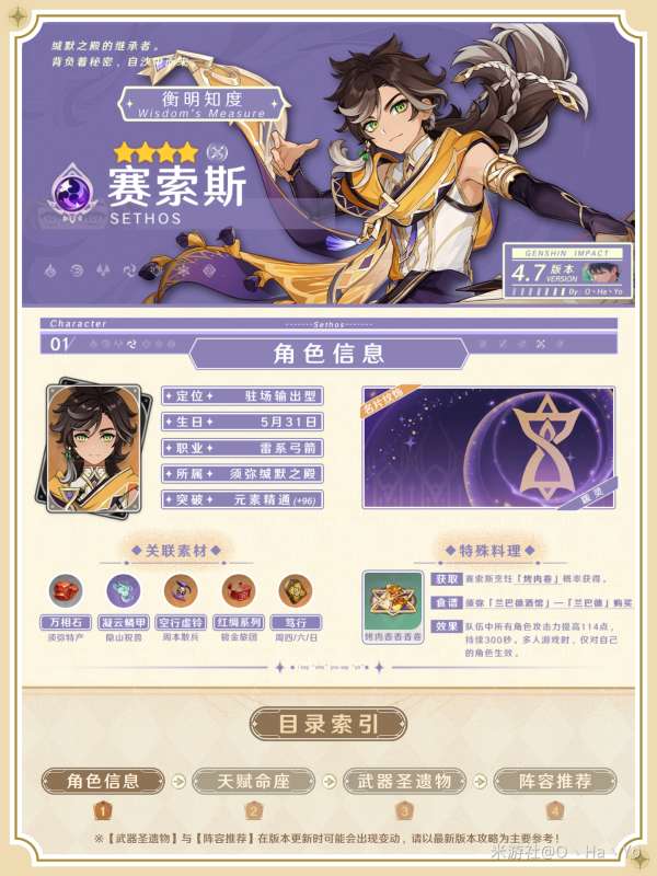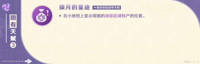 赛索斯在队伍中时,若处于须弥区域,在小地图上会显示须弥区域的特产,这个天赋和提纳里的一致。