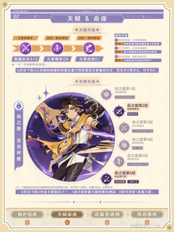 天赋升级主要是提高瞑弦矢的增伤倍率,它基于悉索斯的精通转换为伤害值,而并没有单独提供基础的伤害倍率。因此,在天赋升级中,建议您首先优先提升A,然后再提升Q。