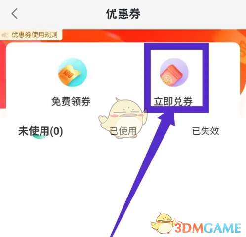 3、进入兑换优惠券页面,输入兑换码,点击确定。