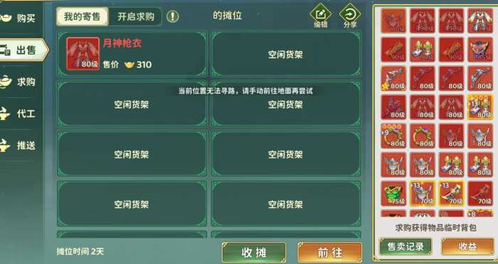 每次刷怪后掉落的装备和道具,有些使用不到或是根本没办法用的,比如不是同一阵营和职业的装备,可以把这些用不到的东西寄售到地摊上,换成元宝和铜钱。