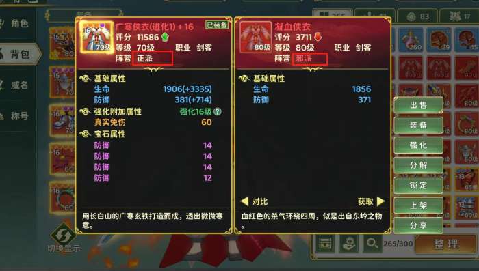 正邪两派阵营的第一个区别就是在装备上,我们知道如果自身等级不够是没有办法装备高等级装备的,但除了这个区别,你会发现有些装备明明等级够了却还是装备不了,一种是众所周知的职业原因,在一个就是阵营的限制了。
