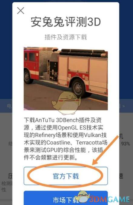2、点击安装测试,会出现一个弹窗,我们选择“官方下载”,下载测试安装包需要一段时间我们耐心等待。
