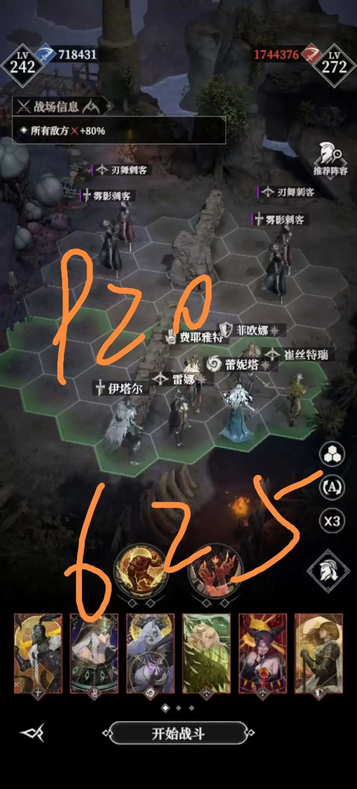 920我直接抄了我以前625的阵容和站位,试了下是可以的。第二次手动就过了。开局用最快的速度把灾厄丢菲欧娜头上。骨女放技能后丢石头人在暗奶前面。然后点挂机。。。