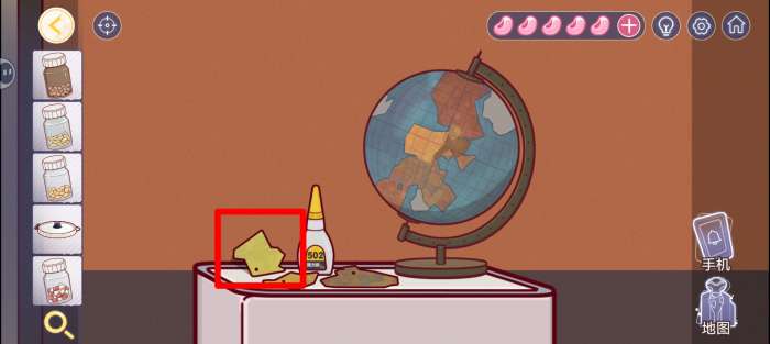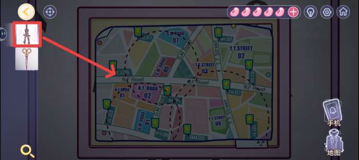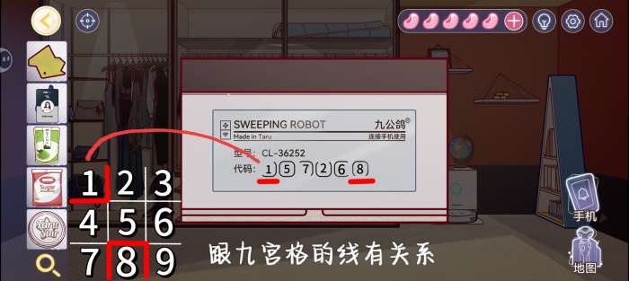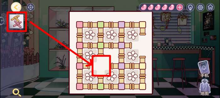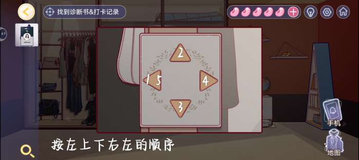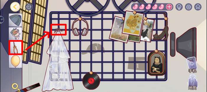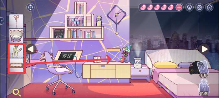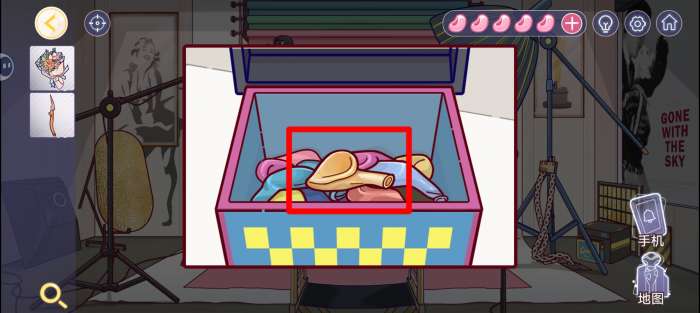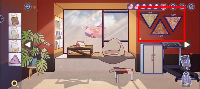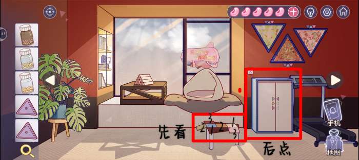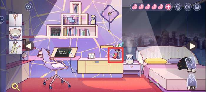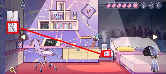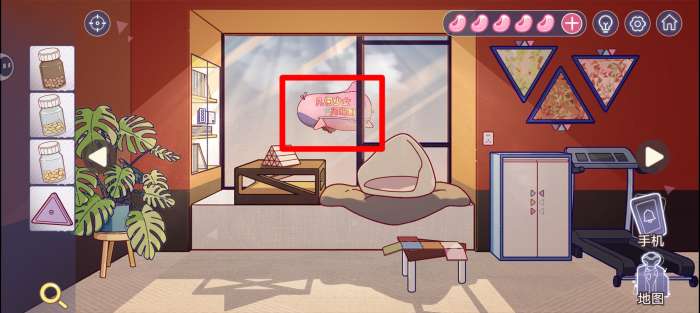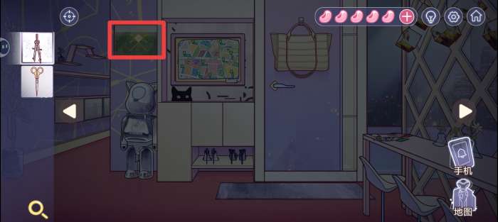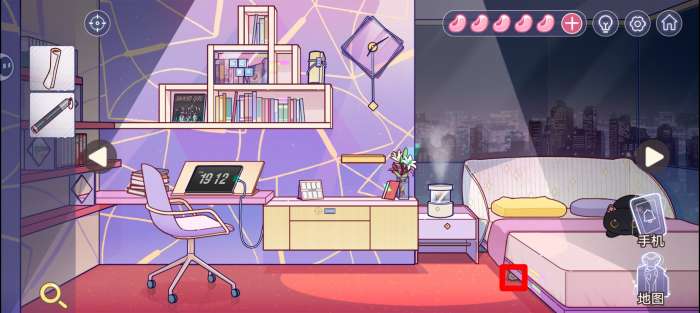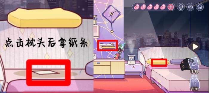 19.点击获得【地图】点击枕头可以获得纸条提示