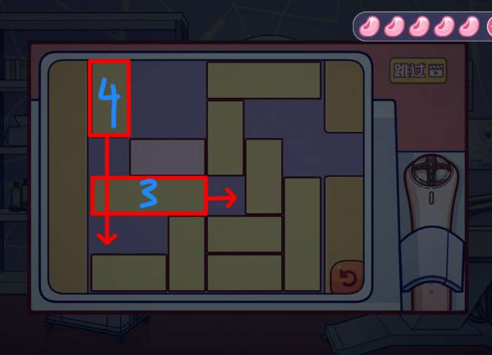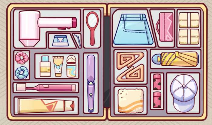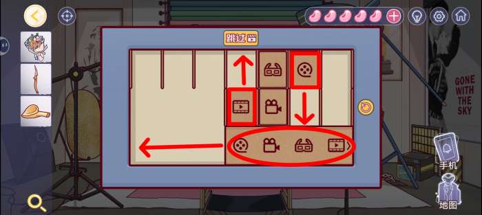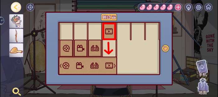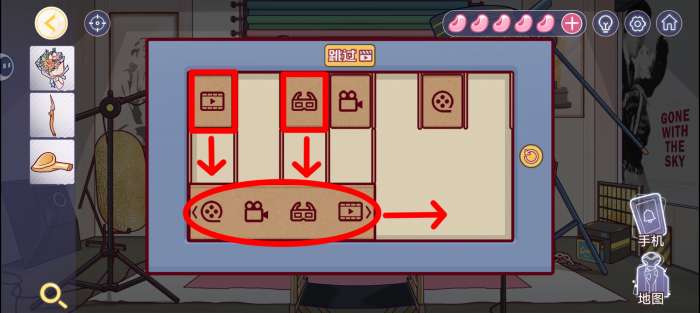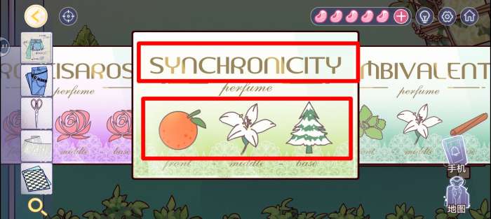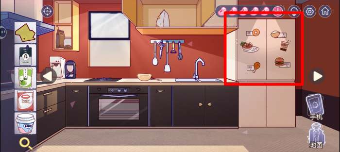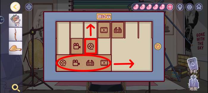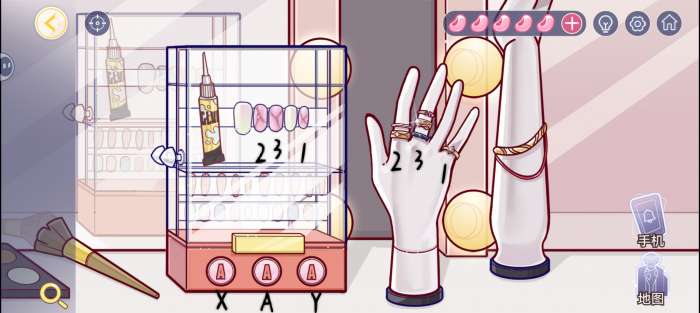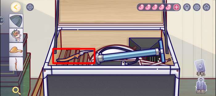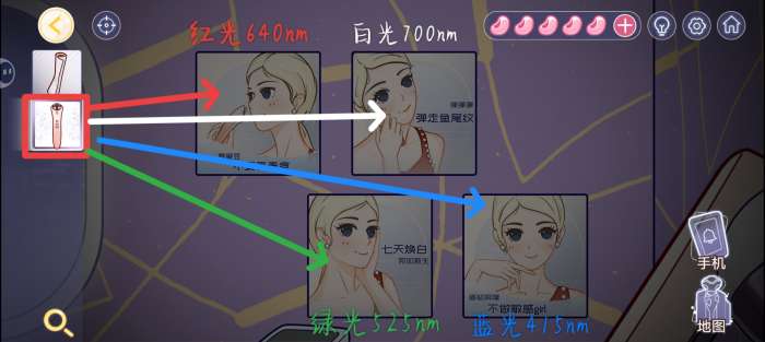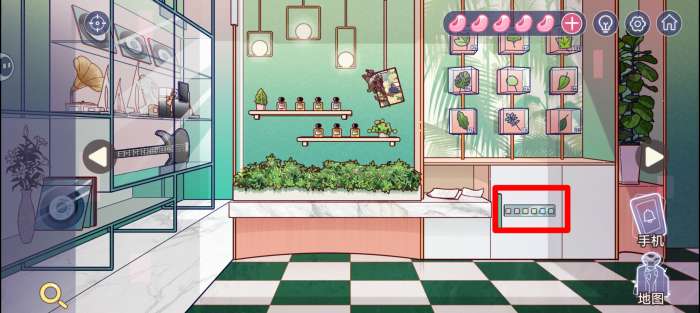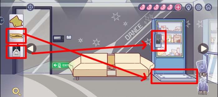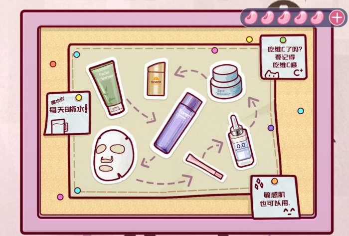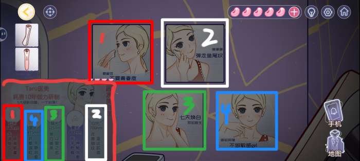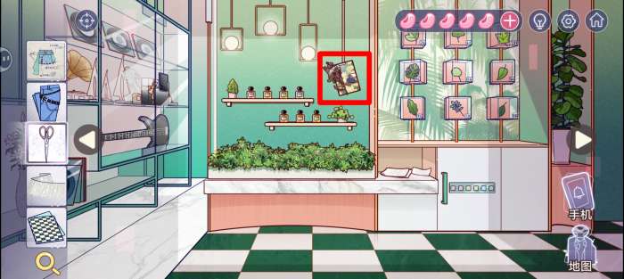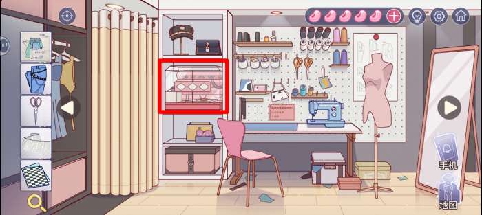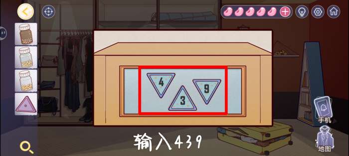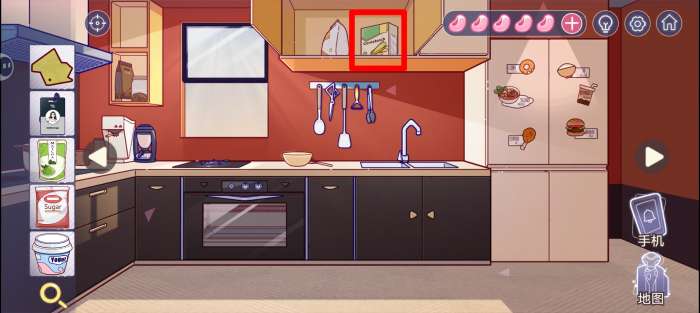 26.点击此位置,把【精华】和【防晒霜】放到柜子上,将顺序调整为图三的顺序,点击获得【钥匙】