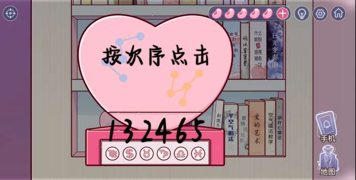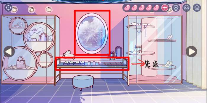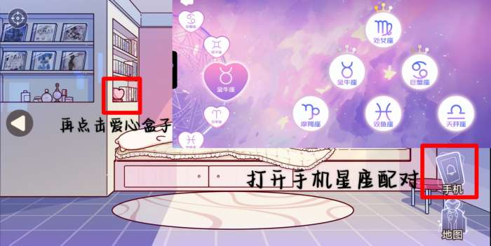 3.先点首饰柜记住图案最多的,后点化妆镜看这个图案是哪个星座