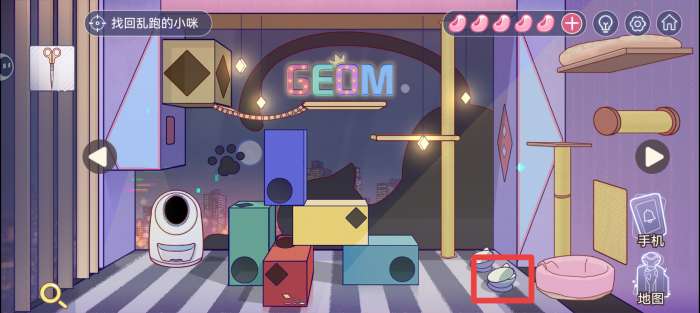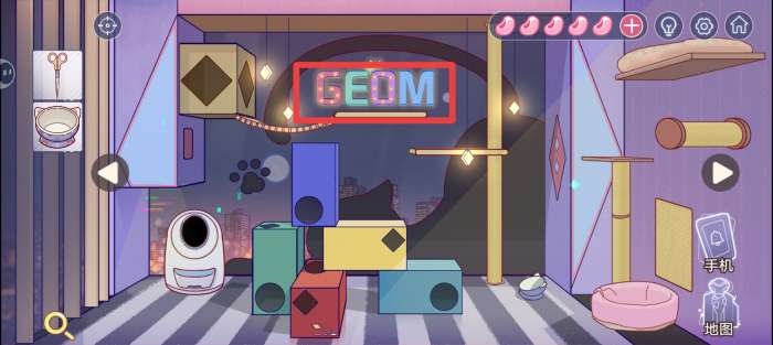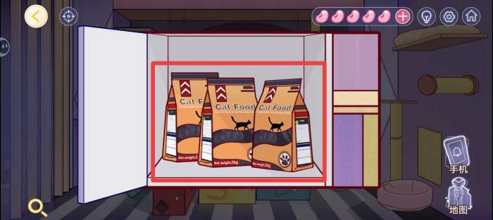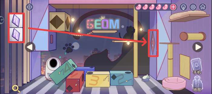 64.把两个【菱形部件】安装在凹槽中,点击获得【猫粮】