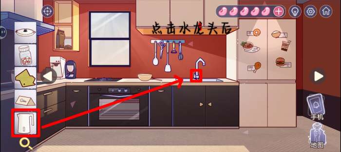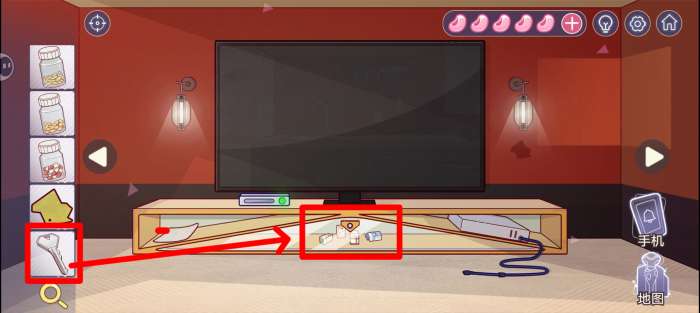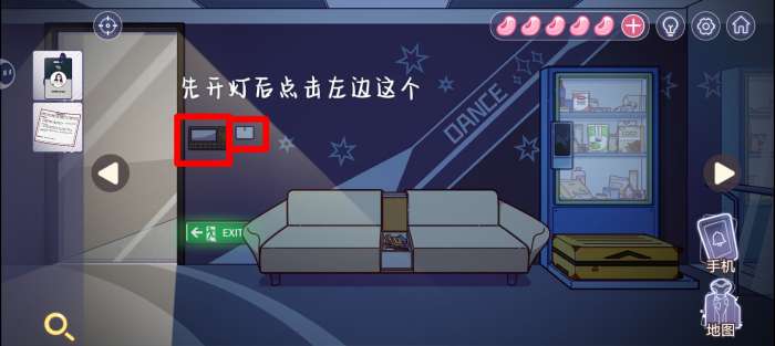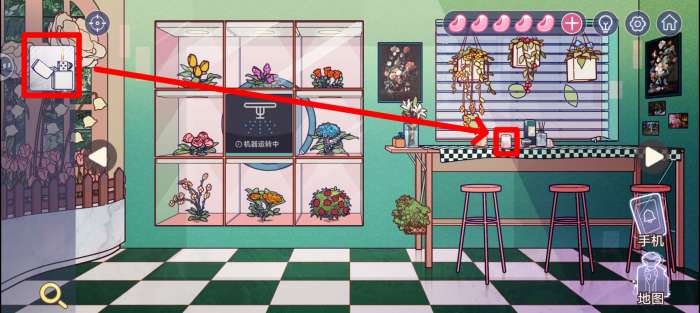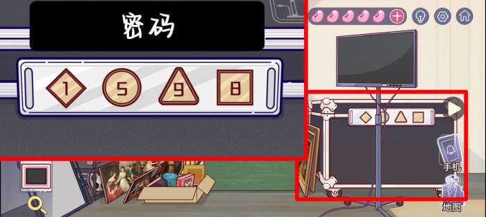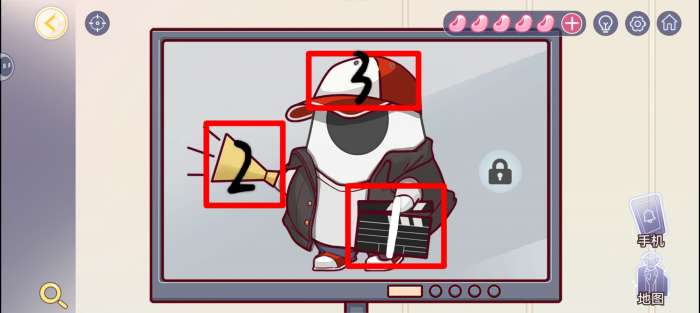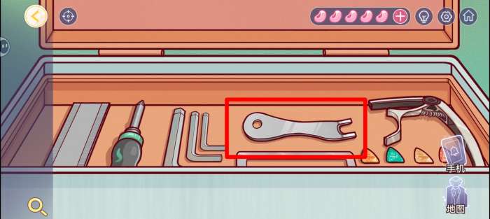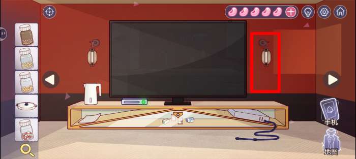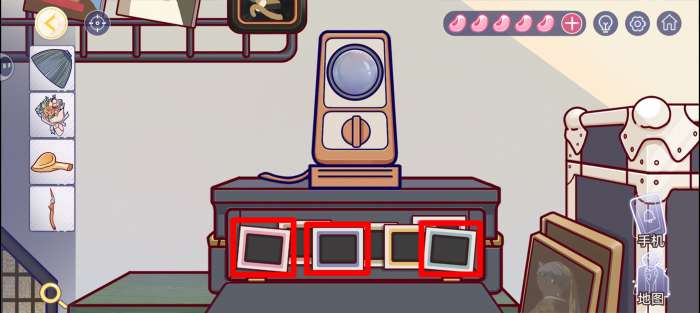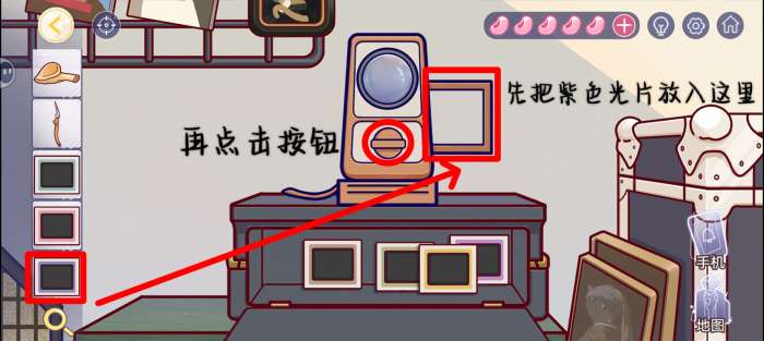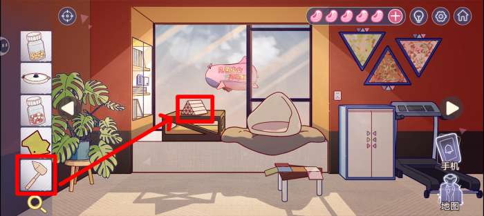 21.红圈内的图案和灯照射出来的形状一样,点击红圈内的地方,打开后点击获得【小锤子】