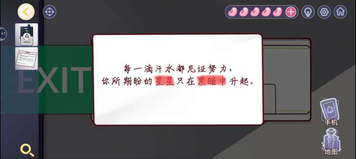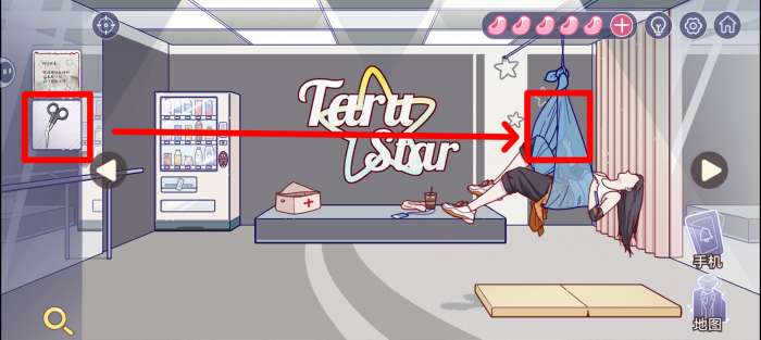 1.进入练习室,点击获得【海绵垫】,将【海绵垫】垫在安婕下方,点击获得垫子上的【纸条】