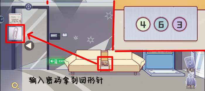 4.根据颜色对应的图案,输入密码:463,后点击获得【回形针】