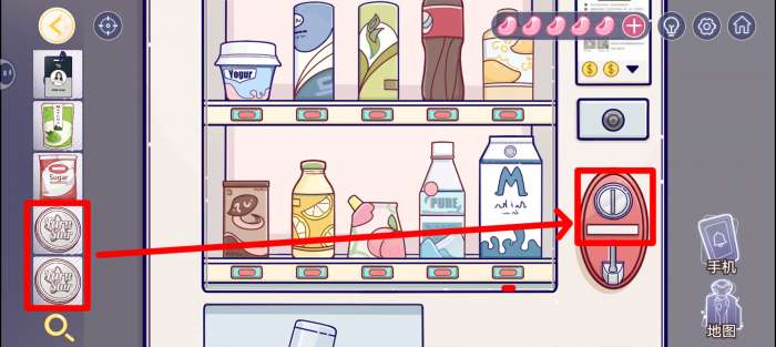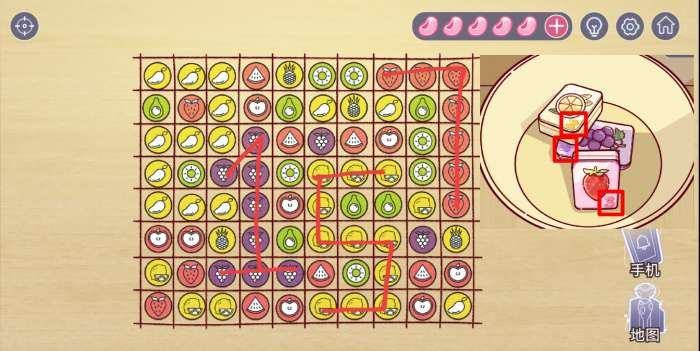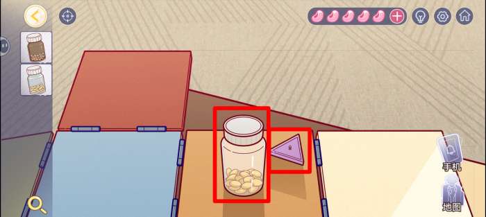 1.收集【矿泉水】后点击垃圾桶,可以看到里面的盒子上有葡萄1、柠檬2、草莓3