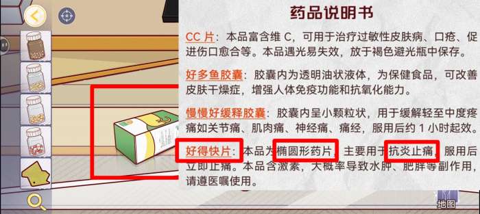 28.点击床下,用【激光笔】照图二红圈位置,获得【眼药水】