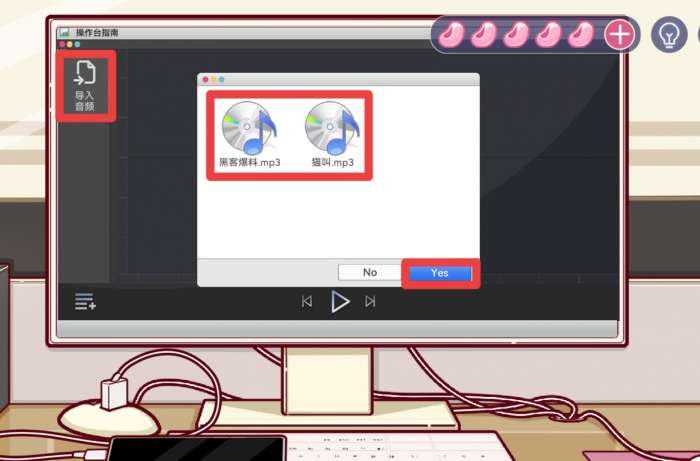 69.点击音频播放器,导入音频,选择两个录音,点yes