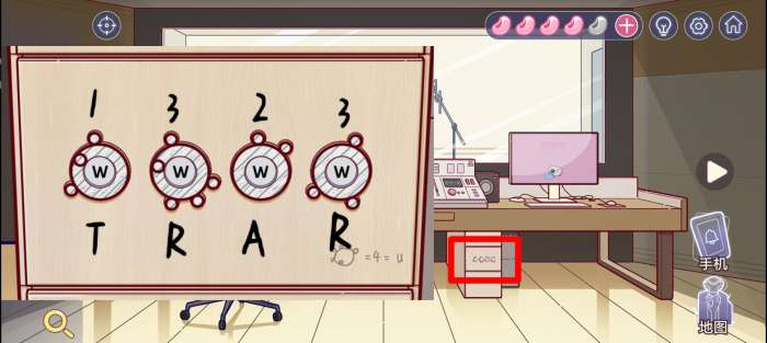 根据规律,上方字母数字分别排在第1323位,所以4个抽屉密码为TRAR,输入密码后获得【信号检测仪】