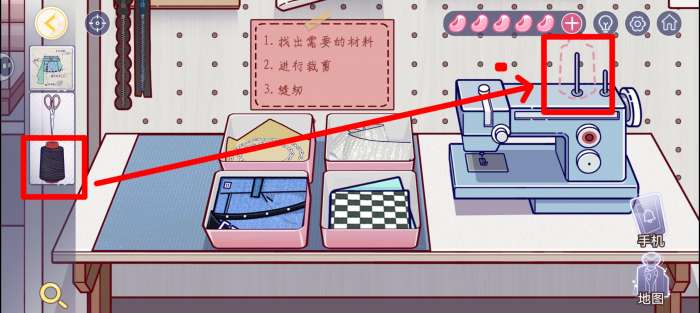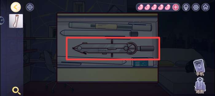 5.点击医疗包,将【回形针】安到拉链头上同时打开包,点击获得【医用剪刀】