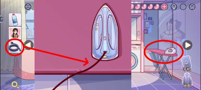 11.点击【纸团】后点击熨板放上去,再加入【瓶装水】,熨平报纸
