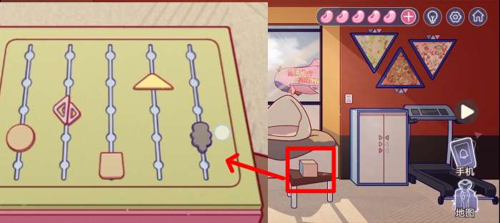 6.用【钥匙】打开抽屉,拿到【指虎】后回到门口处有个快递箱,滑动【指虎】打开快递,取到【摇杆】