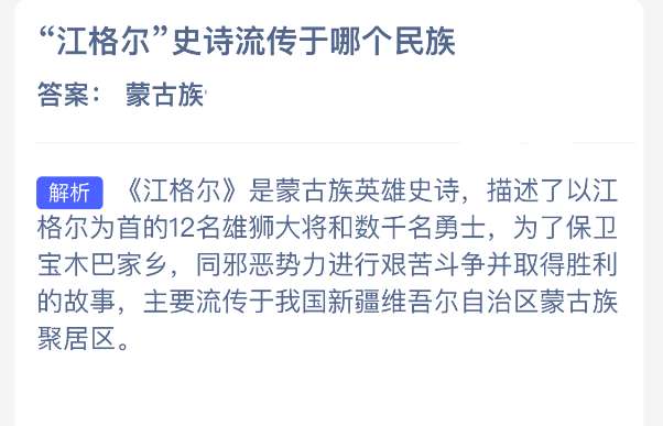以上就是“江格尔”史诗流传于哪个民族?支付宝蚂蚁新村最新答案2025年12月31日,更多精彩内容,请点击关注pk游戏网更新!