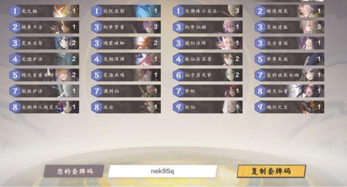 说回我分享的灵卡组,是我一直以来上分用的卡组,优点是前中后期都可以打,基本不会有很大的劣势情况,缺点是后期拖不过阴阳雷,重在打节奏的一套卡组,组了绝对赢多输少,有我独特的一些见解,既不缺大哥,削血能力也强,感兴趣的朋友可以组组看试一下,卡组本身有那么一点小贵,但是很多东西都是可以替代的,希望大家喜欢