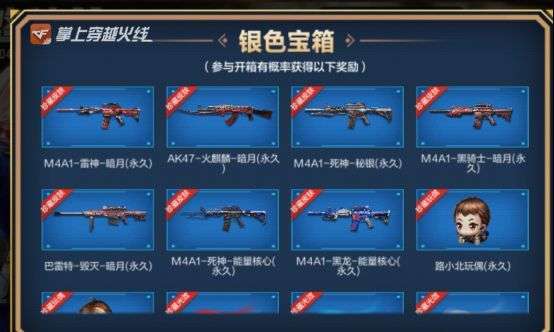 银色宝箱的价格比较低,更适合预算紧张的玩家,1个开箱钥匙抽取1次,9个开箱钥匙10连抽。虽然价格低,但奖励还是非常不错的,尽管没有王者光效之类的,但挂饰、印花、钻石的爆率非常高。