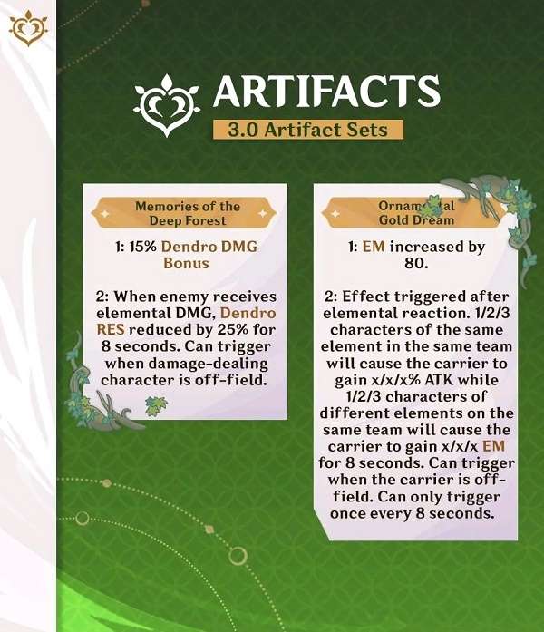 以上就是关于《原神》3.0版本草系圣遗物属性效果一览的全部内容了,希望可以帮助到有需要的玩家掌握更多的信息。