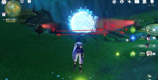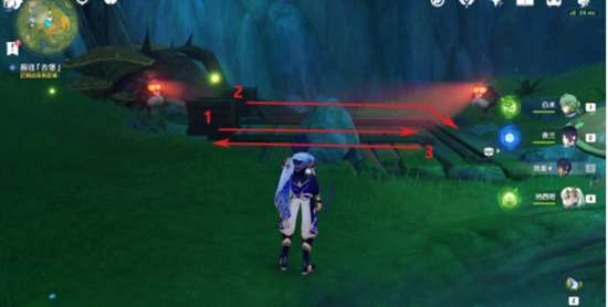 6、完成需返回喇叭处,再次发射炮弹击碎石壁,按照提示深入洞窟,前往藏宝地即可。