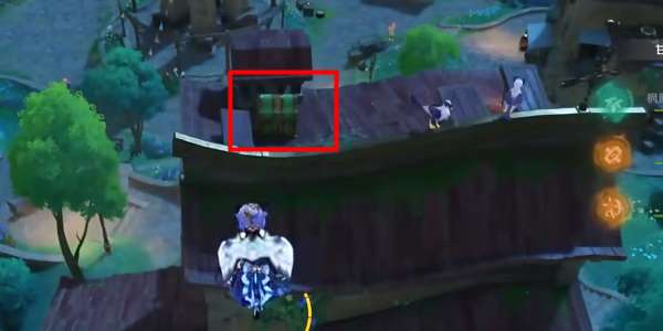 2、到了小镇上之后,玩家会在一个除了中间以外最高的房租建筑的屋顶上看见奇馈宝箱所在的位置。