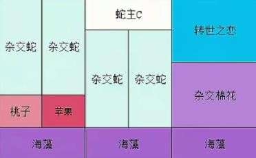 6、蛇为主C:按图内摆法图上阵(海藻可换一个紫薯+20易伤)。
