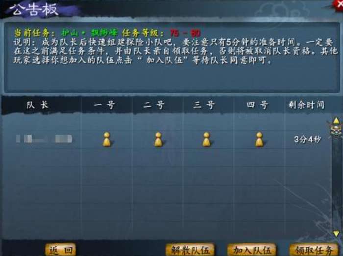 密探任务具备明确的组队门槛:任务开启前须满足最低等级要求;组队成功后,根据目标区域划分人数标准——中原、江南等中低难度区域任务,最低组队人数为2人;雁门、幽州等高风险区域任务,则强制要求不少于3名成员协同参与。单人无法触发任务流程,组队状态异常(如中途离队、掉线超时)将导致任务中断并计入失败统计。