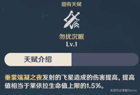 天赋勿扰沉眠则是赋予莱依拉飞星生命值倍率,给予其更高的输出能力,也可以让莱依拉更加安心地堆叠生命值。