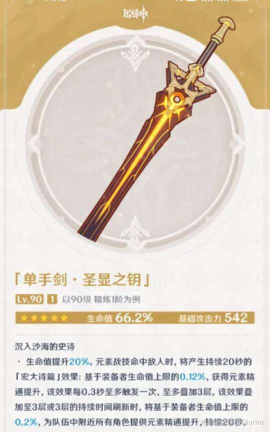 另外,你可以选择一把四星武器,例如西风剑(它具有润滑充能的特点),祭礼剑(它可以叠加双E盾,但是需要贴近敌人的E技能),或者狼牙(外观搭配好看,可以增加元素爆发的伤害)。