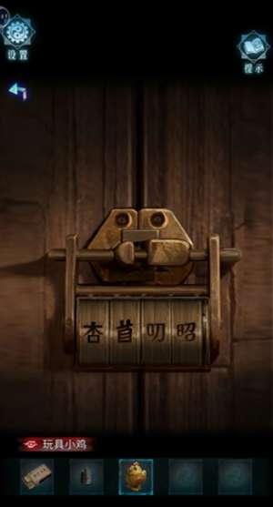 10、观察3个地方的镜子,地下室铜镜上有一朵花,小圈圈住眼镜,大圈圈住嘴;卧室梳妆镜上有两朵花,小圈圈住鼻子,大圈圈住耳朵;衣柜穿衣镜上有三朵花,小圈圈住手,大圈圈住心脏,再根据梳妆镜后面墙上的红字“由小至大”,可得人体部位排序应从小圈到大圈;而镜子上花的数量代表顺序,由此,可调整衣柜中木箱密码锁密码为“眼睛-嘴-鼻子-耳朵-手”
