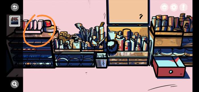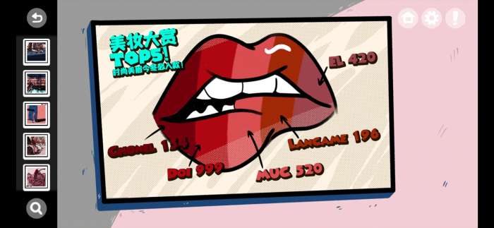 点击化妆台上的口红打开口红盖后发现最短的两根口红再与墙上的色号进行比对得到420154