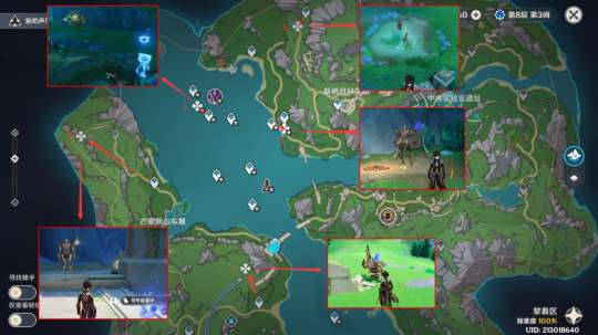 点位4传送锚点没有开启的小伙伴可以通过boss千年珍珠駿鳞旁的传送锚点前往,传送之后往右上方走,走到一处海水处,下潜顺着路径游即可到达目的地。