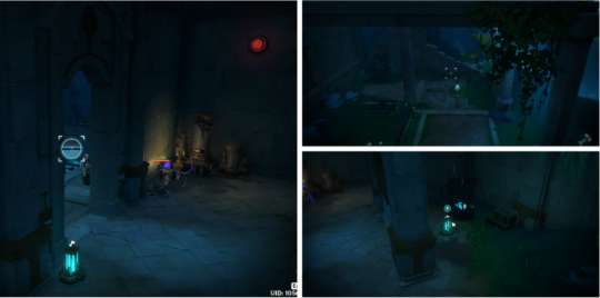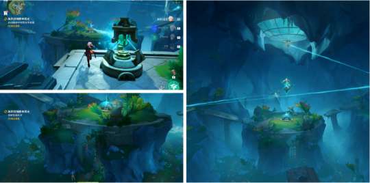 ●顺着光线调查遗迹内的第三个光学装置。启动所需的道具在二楼,拾取后启动光学装置。