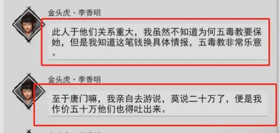 7、对话中有提到五毒和唐门,唐门李香明自己去,所以我们要去五毒。