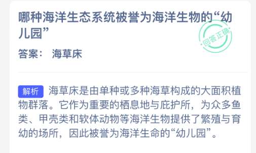 1、哪种海洋生态系统被誉为海洋生物的"幼儿园"?