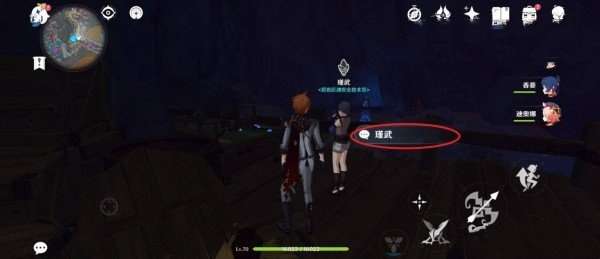 1、首先前往层岩巨渊地下矿区找到NPC瑾武上前1对话。