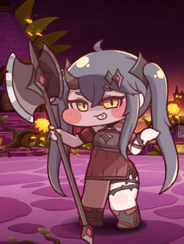 薇尔薇特性格沉稳冷静,普通攻击为挥动巨斧对最近的目标发动一次范围性物理伤害。她的主动技能“全都过来啊”可举起武器向周围敌人发起嘲讽,施加挑衅状态,使敌方单位在持续期间只能锁定她进行攻击,同时在此阶段内自身所受的物理伤害降低。