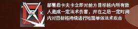 一旦部署了技能,卡夫卡会在数秒内停止攻击,使周围地面上的所有敌人都陷入了一种【沉睡】状态,这种状态就像无敌又无法行动。在技能结束时,它会对周围所有敌人造成一定的法术伤害。