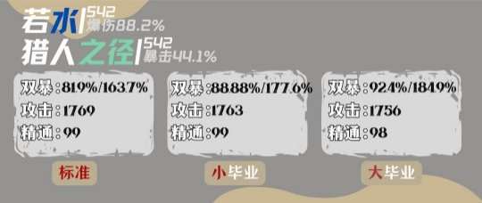 4、双暴不一定要按照图中所显示的比例来配置。暴击和暴伤可以按照1:2的比例置换,只要满足一定数量的双暴词条即可。同样地,你也可以调整精通和攻击的词条数量。